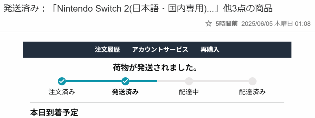 それが本当に現実だと実感に変わるのは、配送完了メールを受け取った瞬間です。